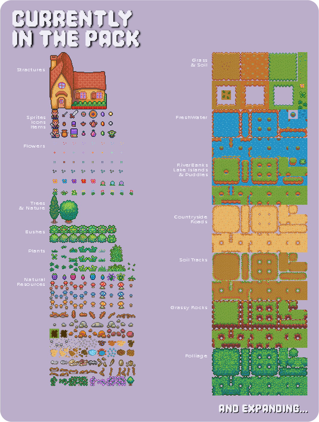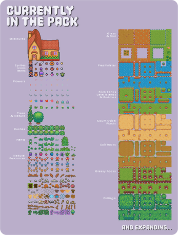 Every sprite is drawn by hand — no AI, no filters. Just clean, colorful pixels and a cohesive palette built to blend beautifully in your world.