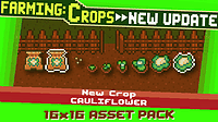 - November 07, 2025 by Tolee Mi1#pixelart, #gamedev, #16x16, #farming, #rpg, #assetpack, #cauliflower, #topdown, #indiedev, #roguelike, #devlog, #spritemap, #tileset, #itchioThe fields keep growing! This update adds a brand new Cauliflower crop to the Farming Crops pack β expanding your garden and bringing a fresh touch of color and shape to your top-down farm builds... Continue reading