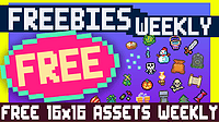 - January 06, 2026 by Tolee Mi1#freebies, #free stuff, #loot, #free assets, #16x16, #pixel art, #tileset, #spritesheet, #dodot, #rpg, #roguelike, #adventure, #crops, #farming sim15 new random assets are yours to download. Change of policy : This is no longer a mystery pack a, you can see directly what you get. And the previous collections will NOT be replaced instantly, but t... Continue reading