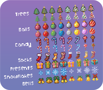 Featuring cute 16x16 pixel icons and props, this pack is made to decorate your virtual spaces and boost your Christmas Jam projects.